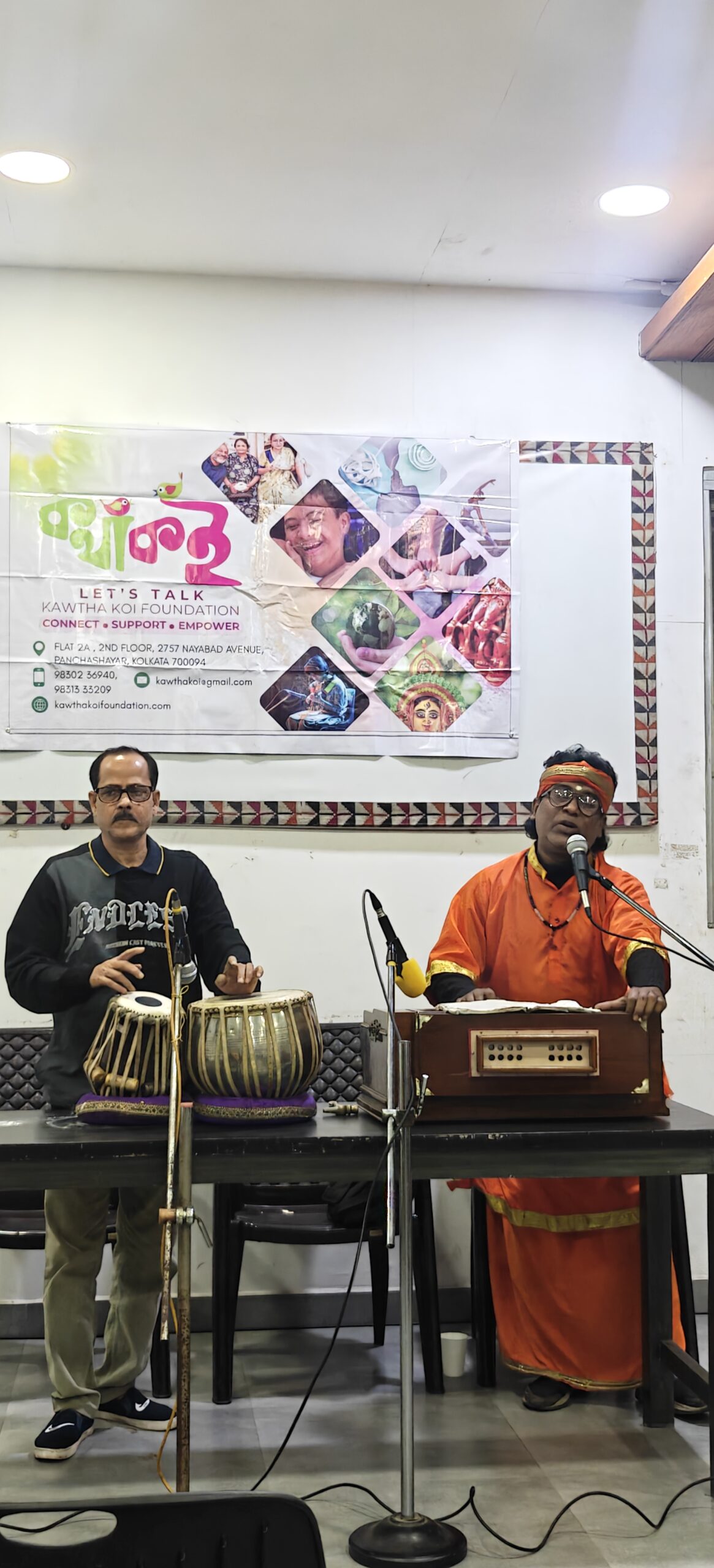 On 21st September, Kawtha Koi Foundation hosted a beautiful Aagomoni evening filled with Shruti Natok, soulful songs, and warm togetherness. People from different walks of life came together to celebrate the much-awaited homecoming of Ma Durga, creating an atmosphere of devotion, joy, and harmony.